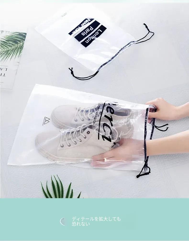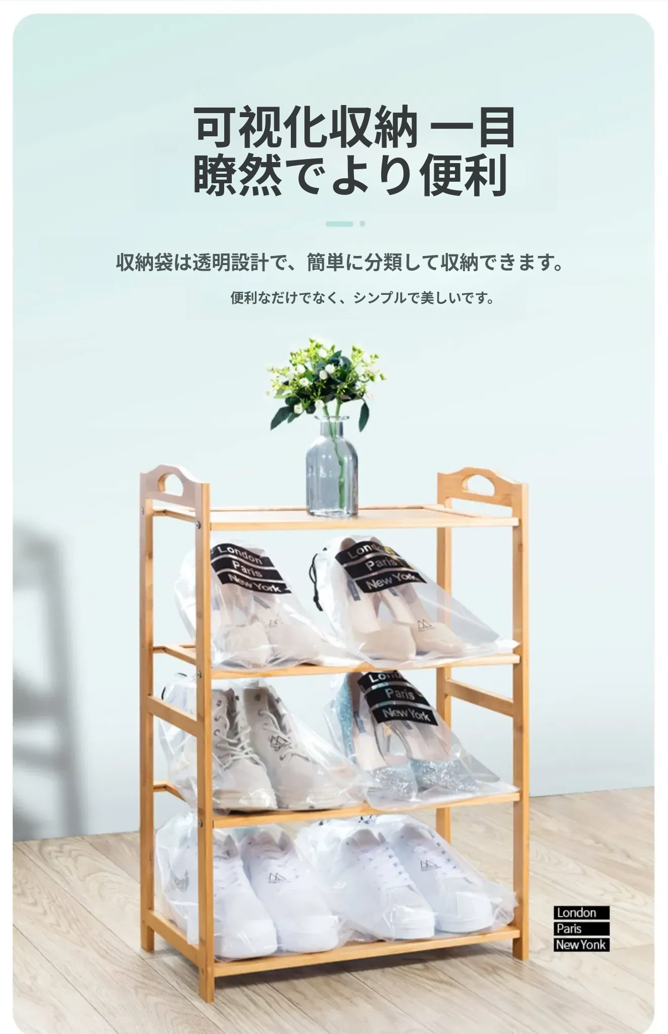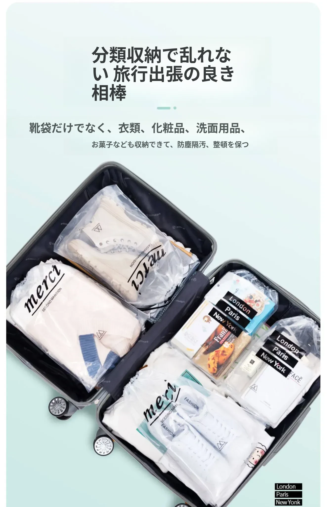 学生寮に最適!防水・防湿の透明収納袋で、旅行やお出かけも安心。靴をしっかり守る!密閉設計でホコリもシャットアウト。おしゃれに収納して、快適な生活を実現する必需品!